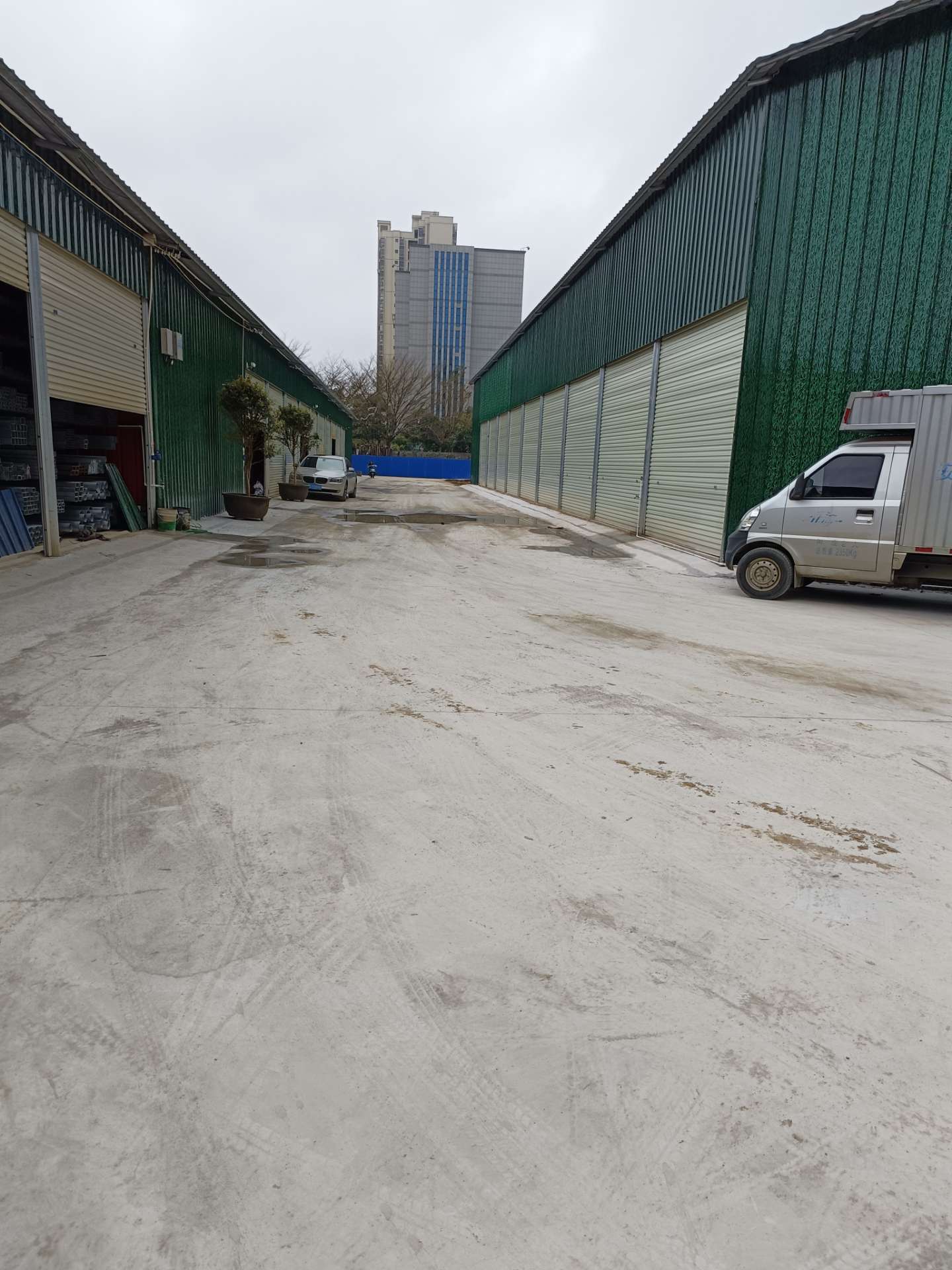 中心位置,大车出入方便,有三厢电,有办公室。有200、300平方的!