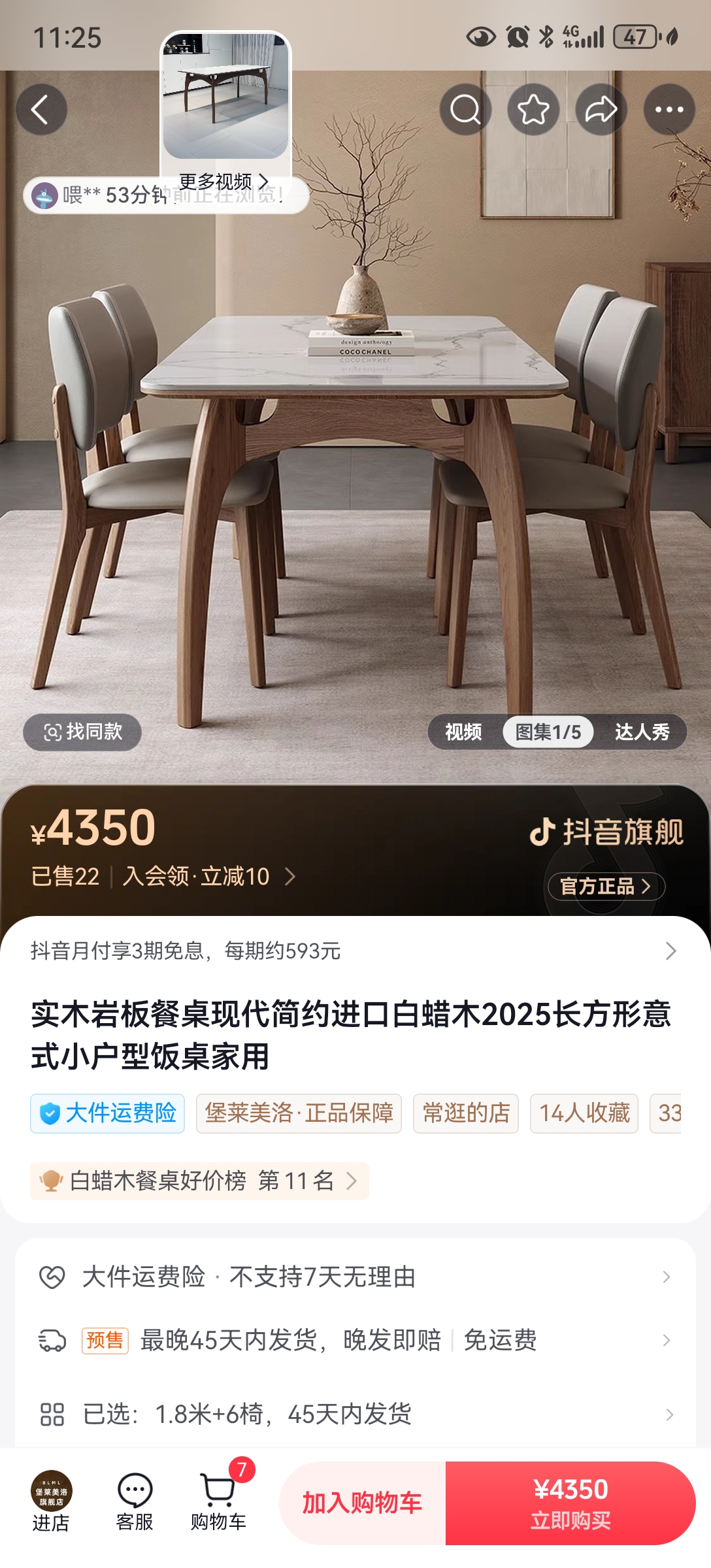 一套岩板实木餐桌含张椅子