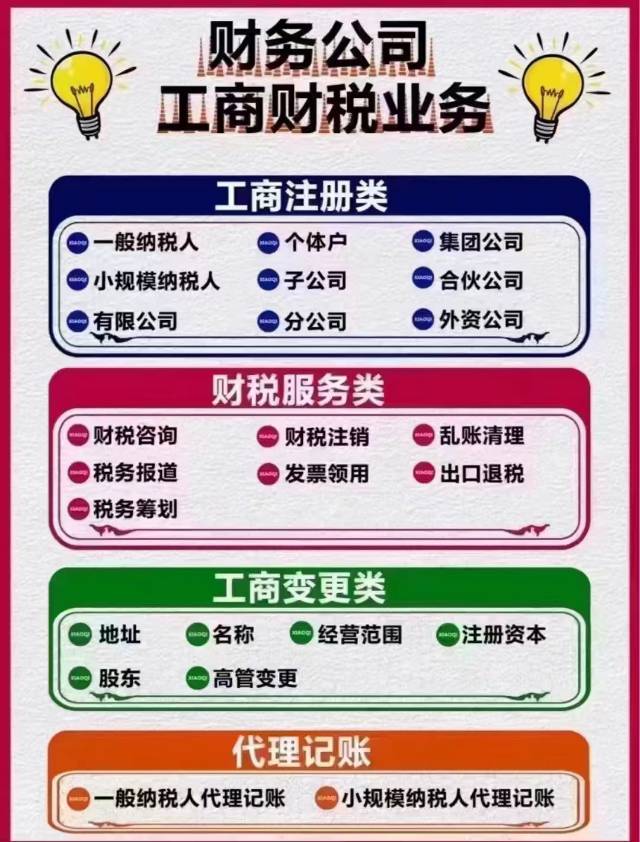 - 公司注册 、 记账报税 、 商标注册 、 专利申请 、 工商变更 、 资质办理 、 年检年报 、 公司注销