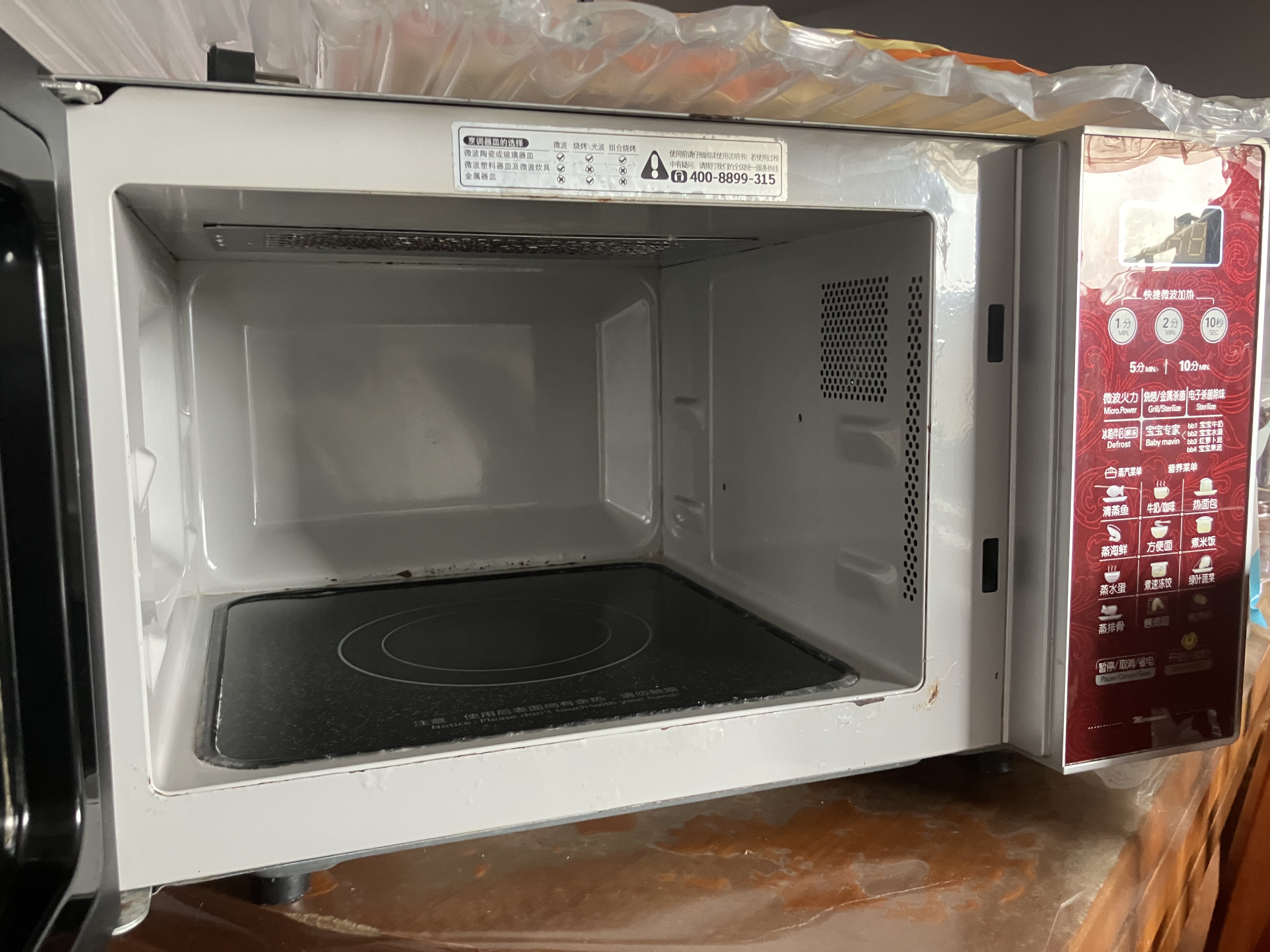 美的微波炉,里面干净(上下左右面板无油渍),不怎么使用,功能完好,电子杀菌除味,宝宝专家功能,仅支持自提