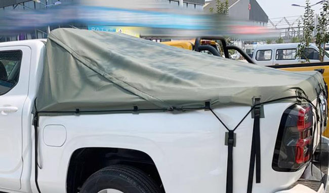 福田火星9/7大将军皮卡车后箱防雨蓬布改装件,新升级雨棚布,增加卡扣垫布,防止磨损车漆。升级防风设计,带有防雨拉链,接缝处刷胶防漏处理。选用优质金属拉扣,结实更耐用。卷合随意,方便收纳。