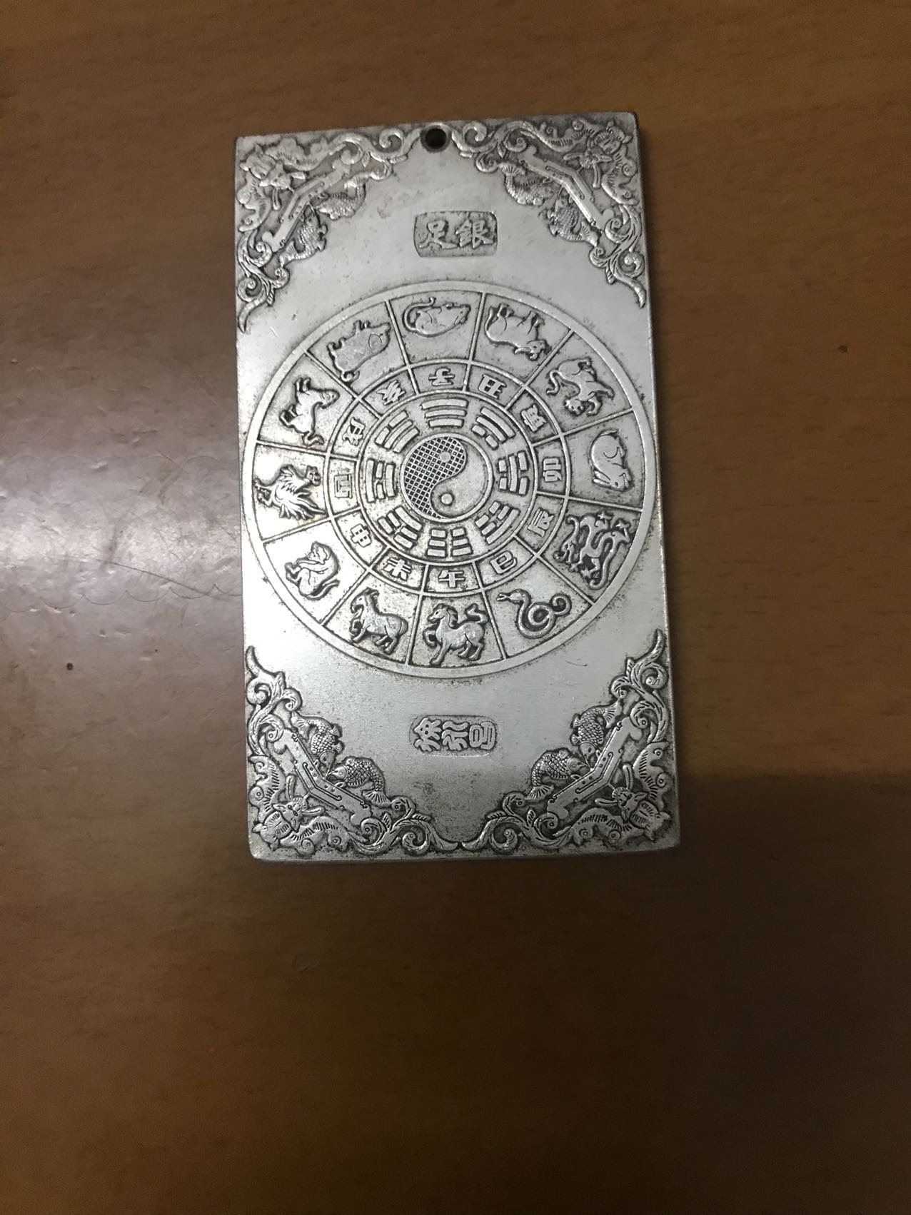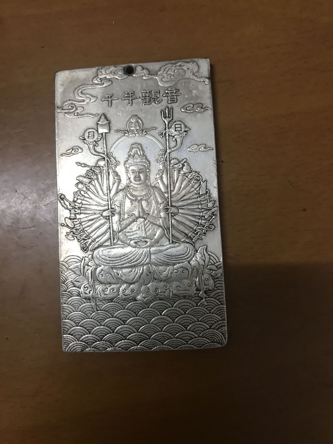 藏银千手观音牌。正面精雕千手观音坐像,背面十二生肖八卦图案。做工精细,包浆自然,品相完好,适🈴️佩戴收藏!