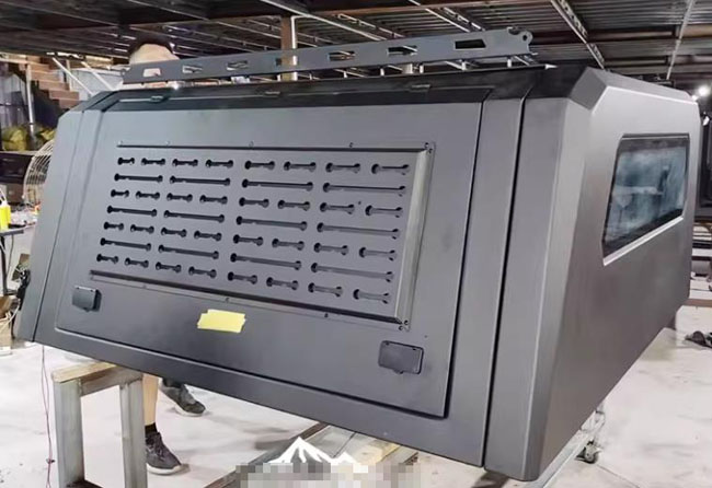 lc79陆地巡洋舰四门双排皮卡车三开门尾箱盖后箱盖改装件,铝合金材质,整体打磨,结实耐用。带有液压升降窗盖,开合灵敏。卡扣安装,免打孔,带锁设计,有效防盗。一侧自带脚蹬,可登盖顶。带高位刹车灯,提高行车安全。