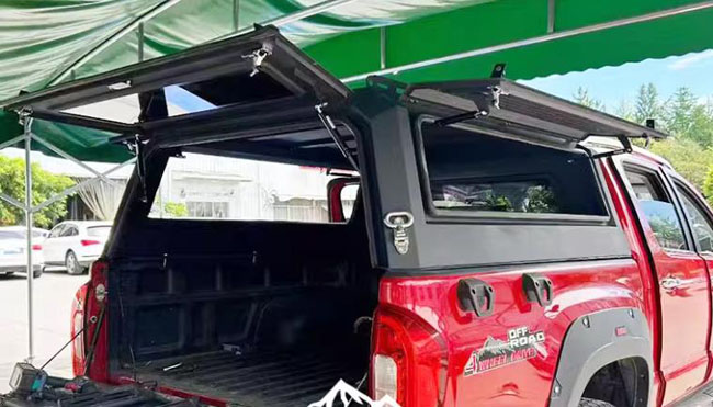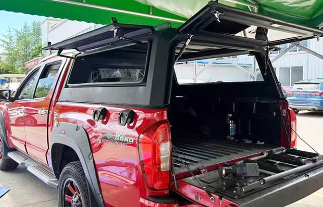 福田大将军g9驭途9拓路者皮卡车三开门高盖后箱盖子,锰钢材质,遮阳挡雨,结实耐用。原车数据开模,整体三开门设计,两侧窗及尾部可打开,带有液压撑杆。免打孔安装,利用卡扣固定。带锁设计,安全可靠。带高位刹车灯,提高行车安全。一侧可登盖顶。