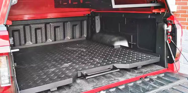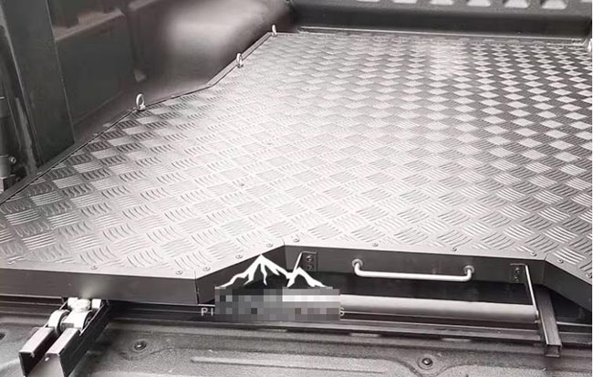 比亚迪鲨鱼皮卡车shark货斗推拉托盘抽屉改装件,铝合金材质,可伸缩式托盘,便于拿取货物。优质轴承,激光满焊,省力易推拉。打孔固定滑道,留有固定拉环,实用方便。承重力强,防水防晒,不易生锈,稳固耐用。