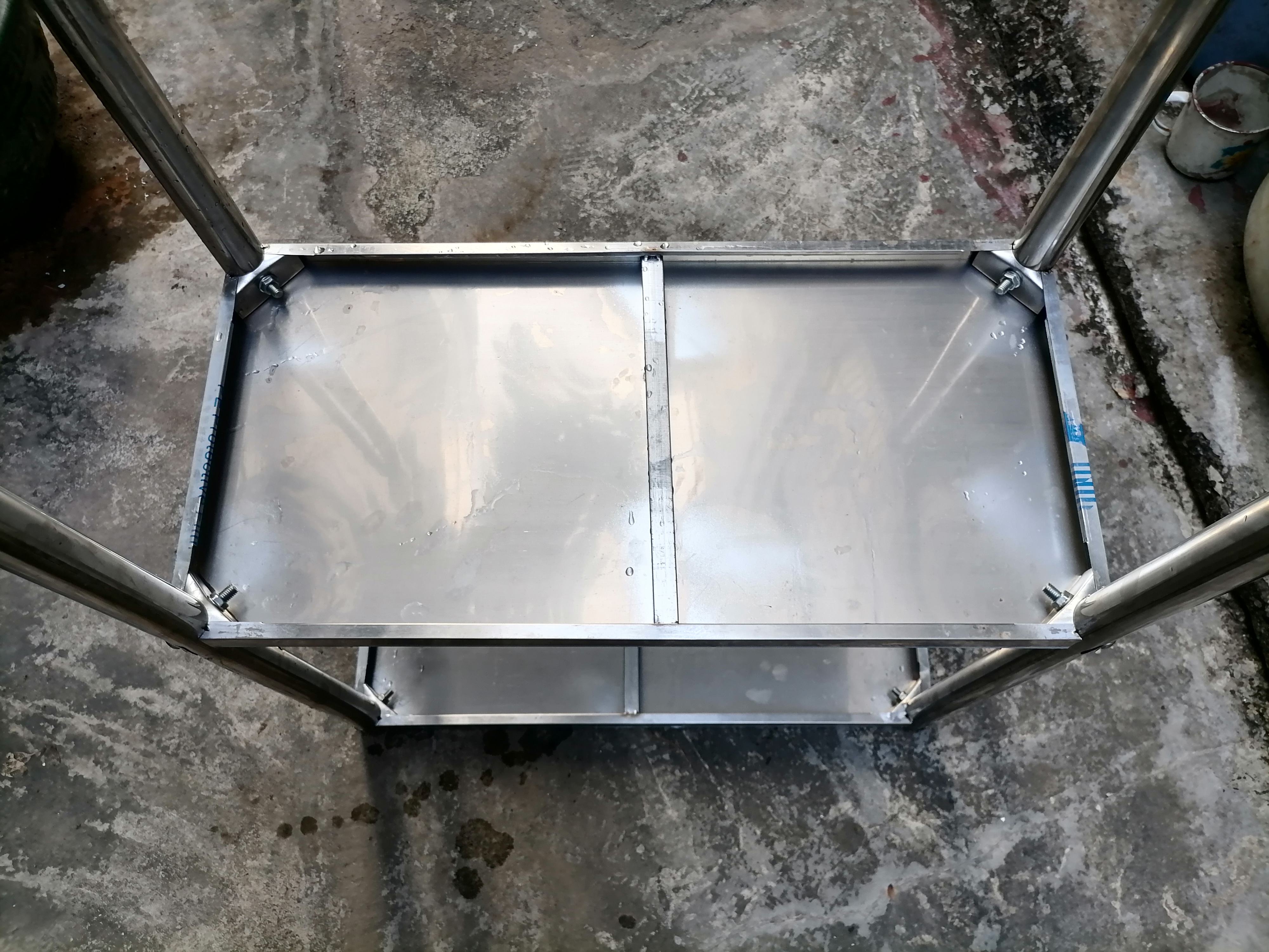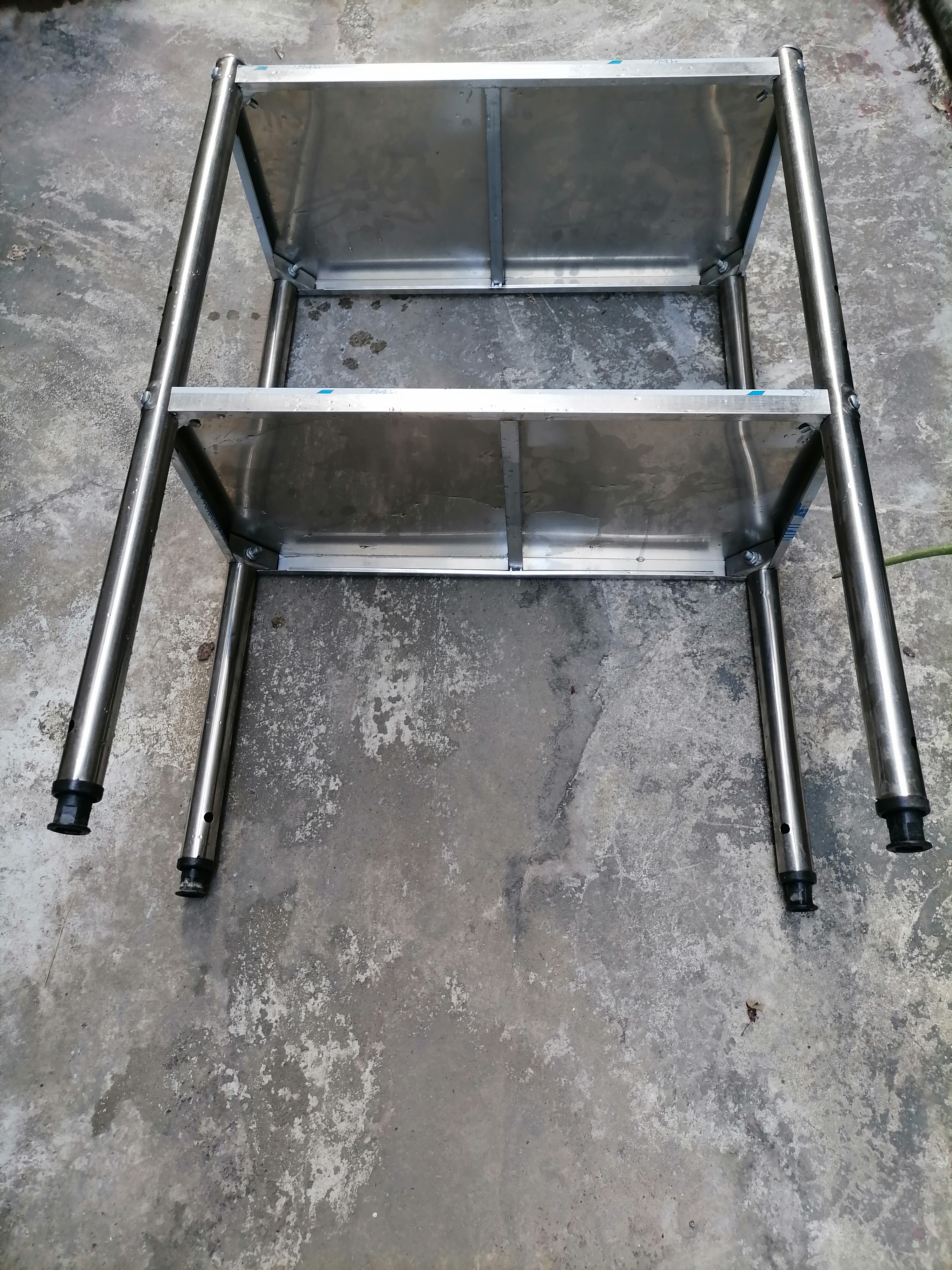 小货架长69厘米,宽29厘米,高79厘米,第一层距35厘米,第二层距38厘米,脚管直径3厘米。面板中部有加强杆,四角有限位块,用螺丝紧固。脚有胶套,以防刮花瓷砖地面。通体为304不锈钢材质,永不生锈,永不腐蚀。绿色环保。连包装胶布都未撕开。设计制造很贴心,坚固耐用,不易变形。可放在厨房、卫生间、阳台、杂物间、屋角等地方,可放置生活用品、食品、杂物,也可作砧板架用,但不能斩骨、剁肉。应用场景广,且占地小。26元出,自提。