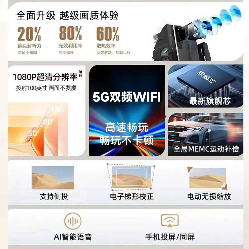 1080P高清画质,支持5G双频WIFI,手机投屏、同屏都ok,安卓系统流畅不卡,追剧、看电影都很爽。小巧便携,卧室、客厅、宿舍都能用,操作简单,老人小孩都能上手。
