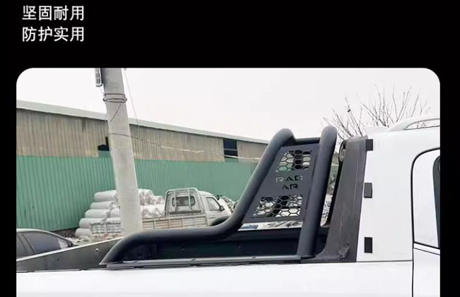 雷达RD5/RD6金刚新能源皮卡车龙门架防滚架护栏架子,镀锌铁管材质,采用激光满焊,高温喷粉工艺制成,防腐蚀性强,经久耐用。安装后增强车身立体感,提升档次,美观实用。贴合原车设计,打孔安装。