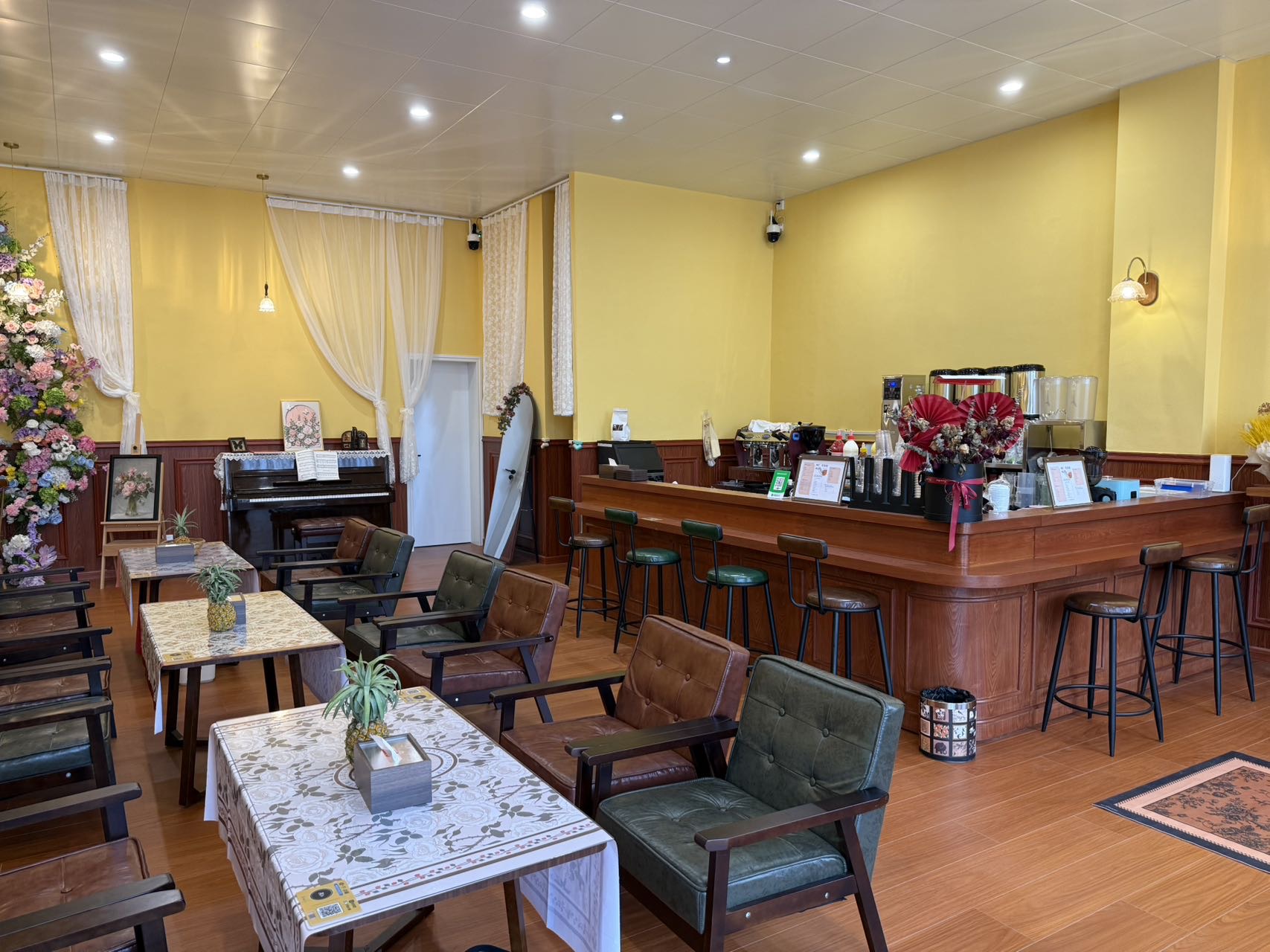 咖啡设备齐全,上下两层楼,共200多个平方,二楼四个房间,有个隔音麻将房,麻将设备齐全,可以带设备出租,也可以整体转让,详情可电话联系,花了20多个装修,现4折转让
