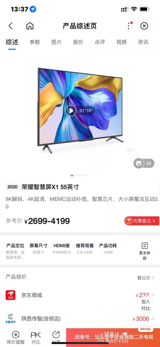 型号:LOK -350 ,2G+16G 8K解码 远场语音控制 人工智能高配电视,具体参数看第四图 。自提:18577995182