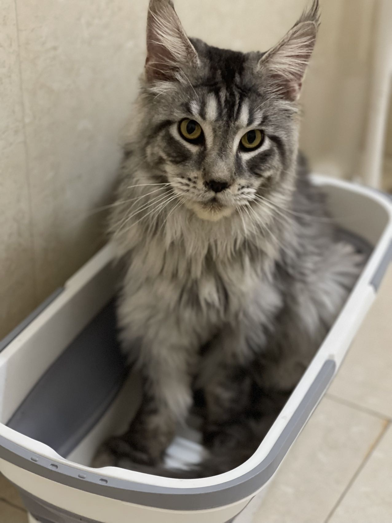 自家繁育的纯种缅因公猫,银虎斑花色和阴影色,骨架大、毛量丰厚,性格温顺亲人,基因稳定无遗传病史。