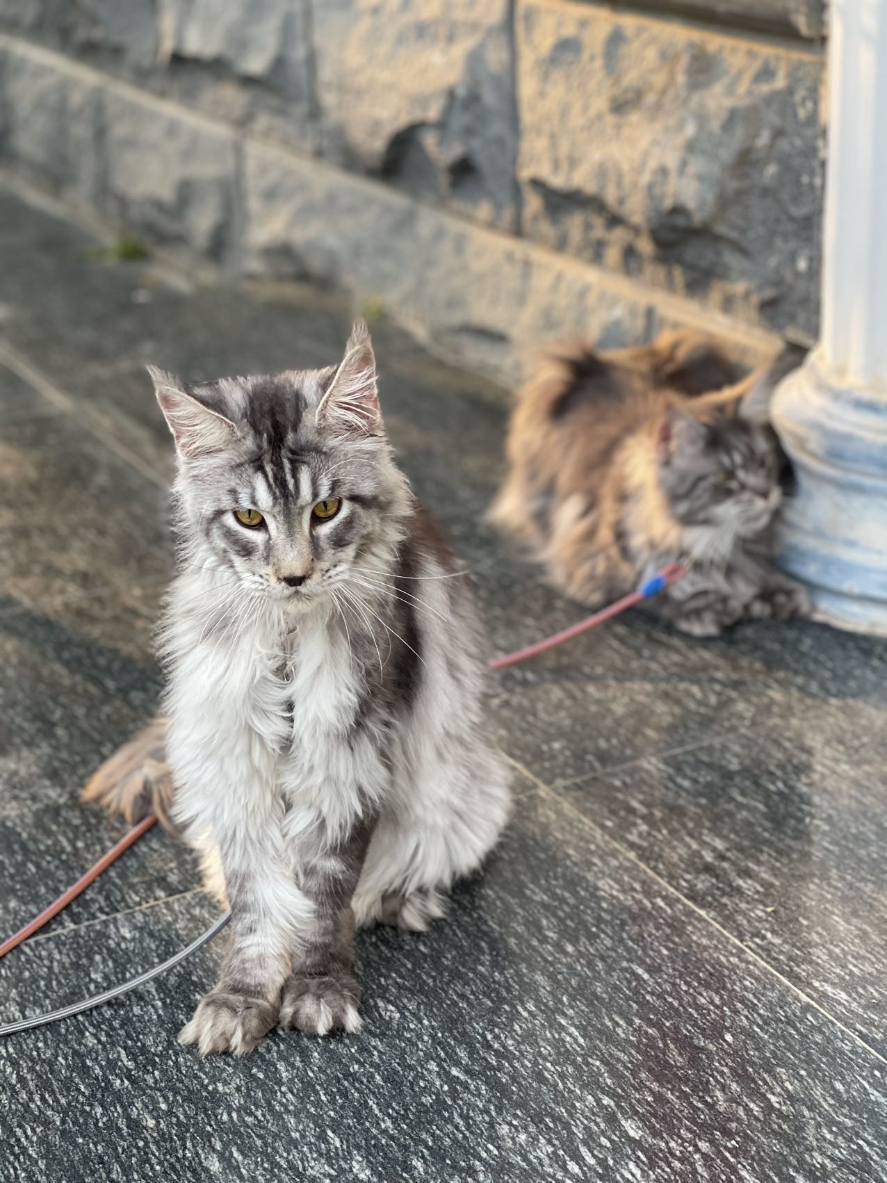 自家繁育的纯种缅因公猫,银虎斑花色和阴影色,骨架大、毛量丰厚,性格温顺亲人,基因稳定无遗传病史。