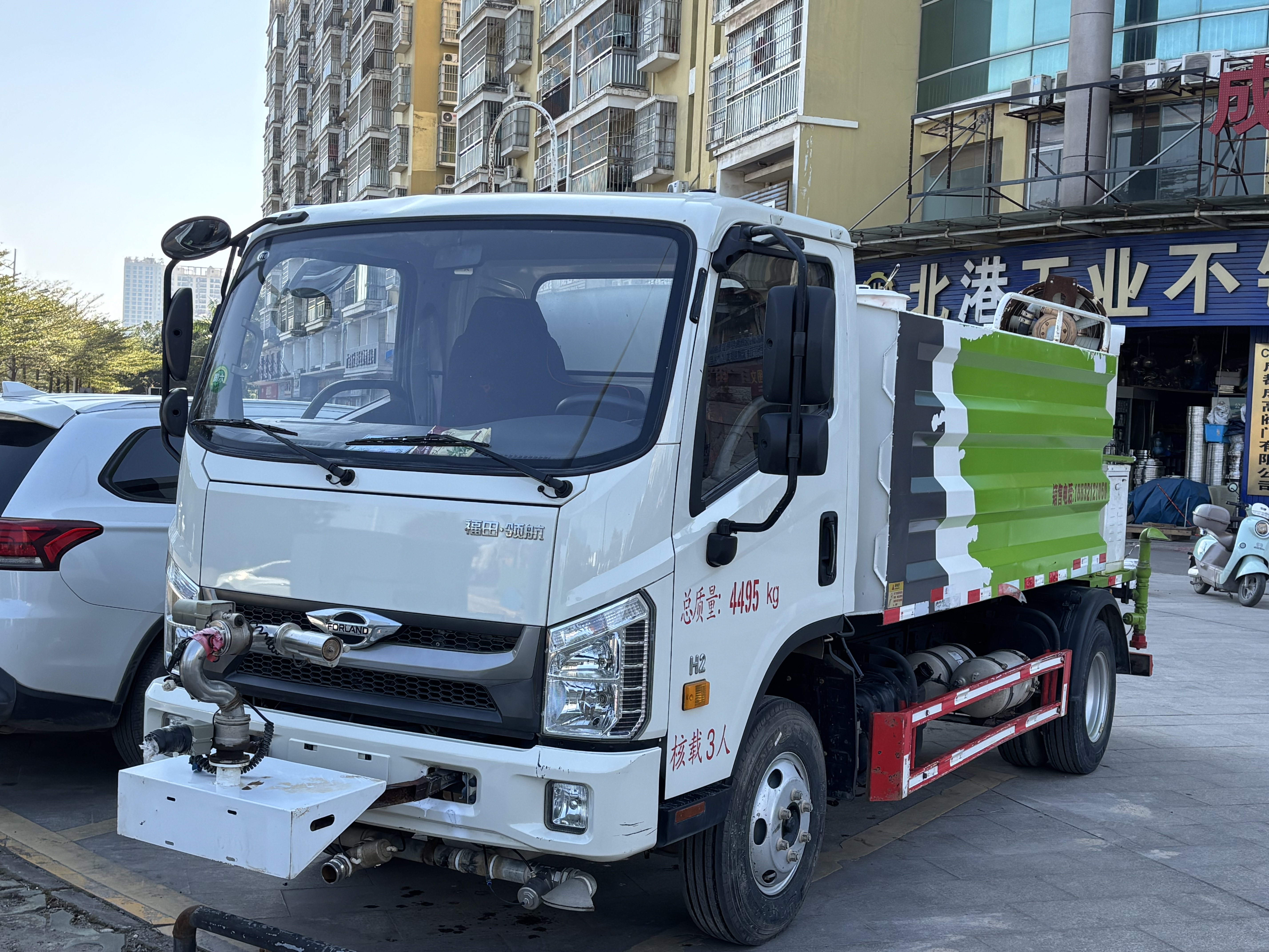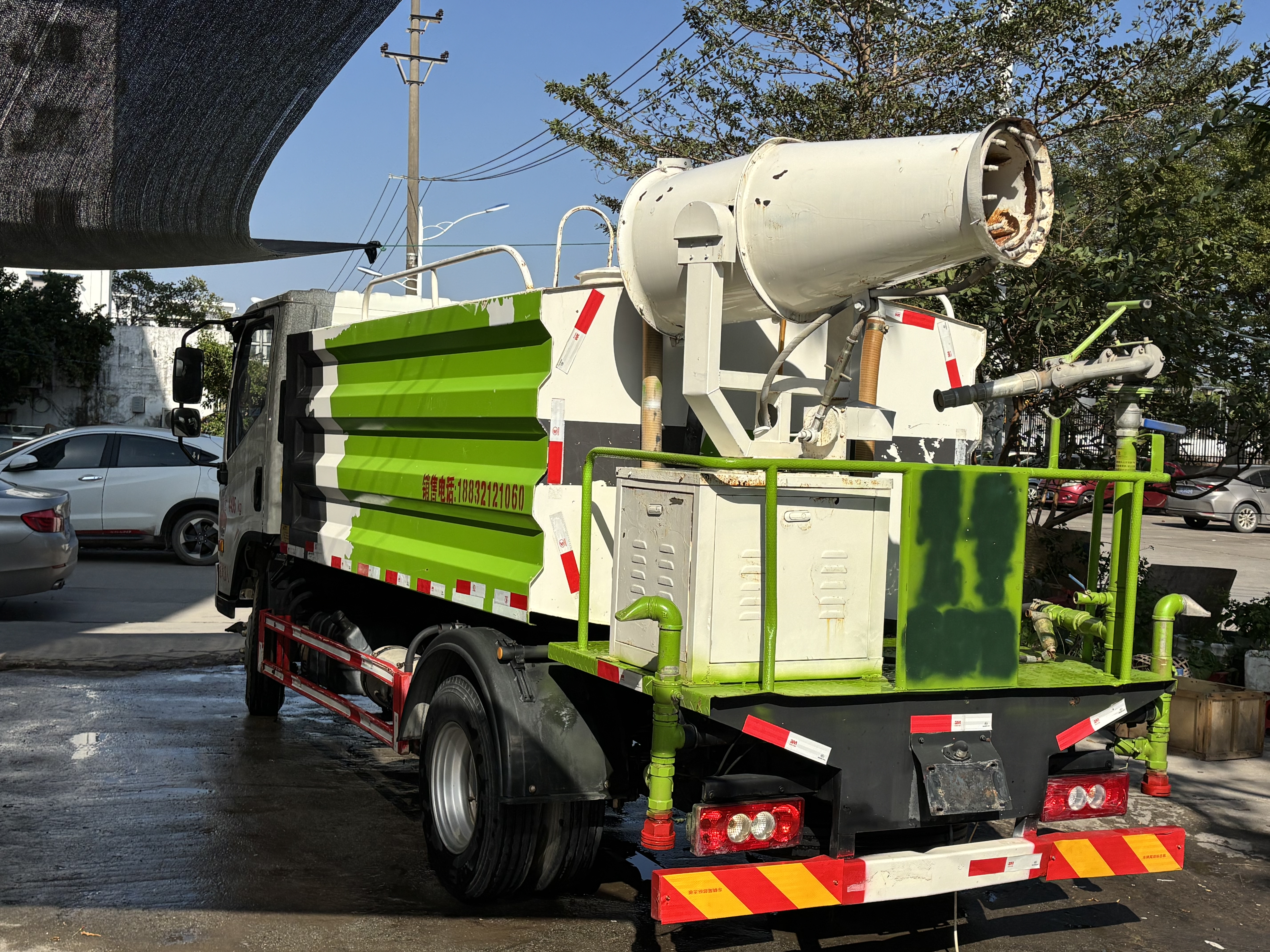 国六2023车8月福田领航H2蓝牌7方洒水车,全柴152匹大马力顶配,凯力的上装,只行驶9000公里,全车配有气动阀门、电动水炮、雾炮机、年审保险到明年,费用一整年【可租可售】☎️18076665900