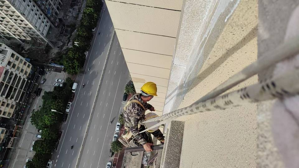 北海顾家装饰有限公司,专业从事外墙吊绳高空作业施工,员工具有高空作业上岗证,购买有保险,可以承接外墙清洗,外墙防水,外墙水管维修更换,外墙翻新,修补,高空拆除安装广告字,广告牌,亮化工程,等一切高空作业施工。