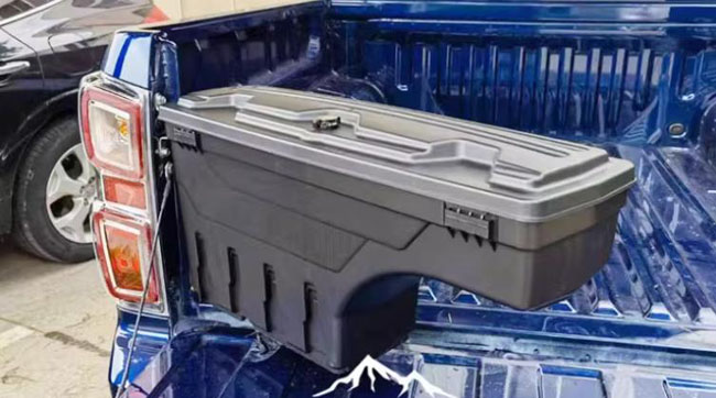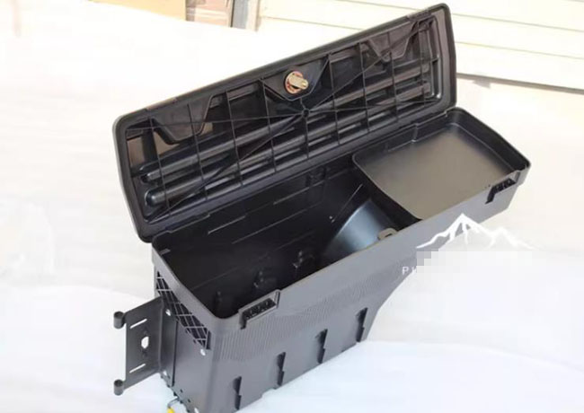 纳瓦拉navara锐骐67皮卡车货箱旋转侧边收纳箱储物工具箱子,MDPE材质制成,专车专用,坚硬抗摔,坚固耐用。打孔安装支架,带螺丝孔位,安装方便快捷。储存空间大,带锁设计,不易丢失物品,安全实用。抗紫外线,耐用不易老化。